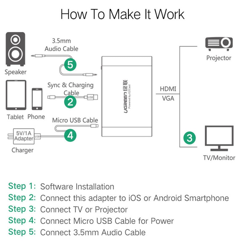 Ugreen HDMI VGA Adapter for iPhone iPad TV Lightning USB Audio Video HDMI Converter for iPhone to HDMI Adapter Lightning to HDMI