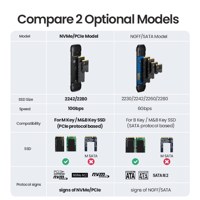 UGREEN SSD Case 10Gbps M.2 NVMe SATA To USB C 3.1 Gen 2