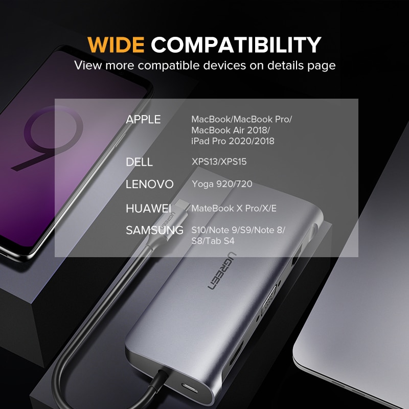 – For Samsung Galaxy S10/S9/S8/Note9/8, it is compatible with Dex Mode through hub, phone system version requires Android 9.0 or above.