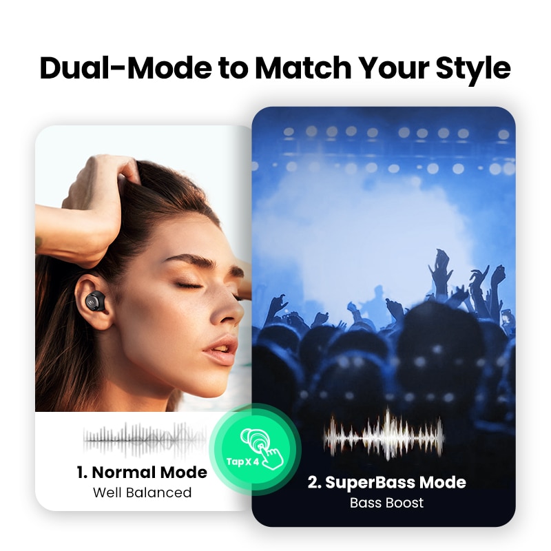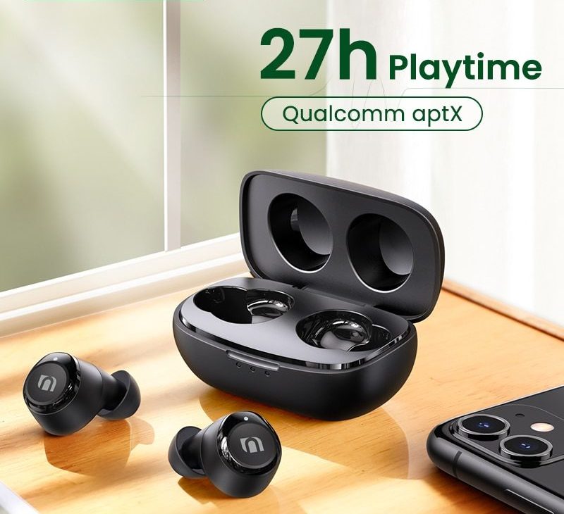 Wireless earphones support USB-C quick charge, up to 9H playtime, and can be extended to 27H with the charging case.