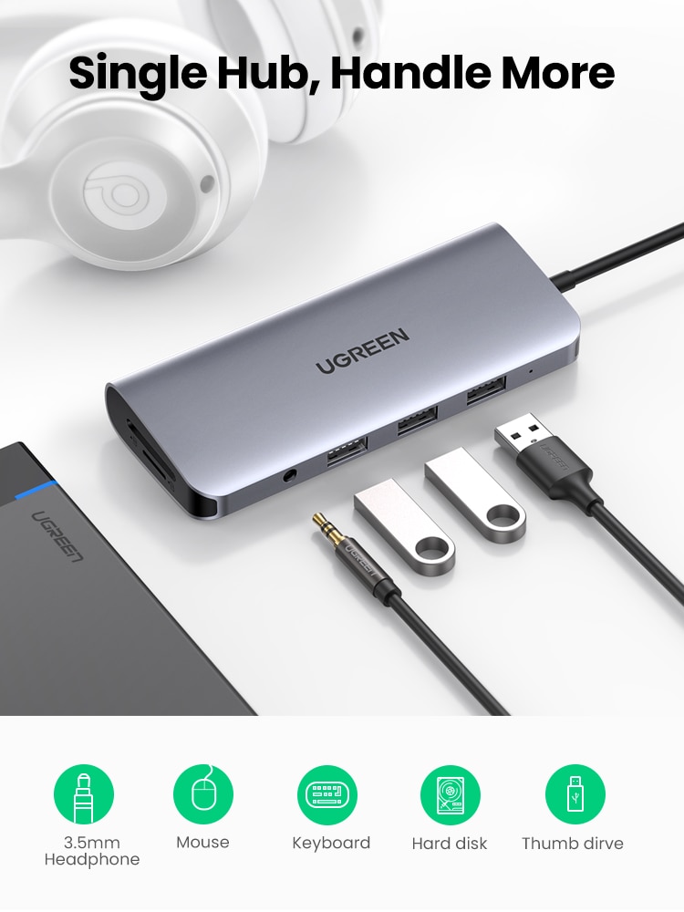 UGREEN USB HUB 10 in 1 USB Type-C to HDMI 4K USB 3.0 VGA PD 3.5mm