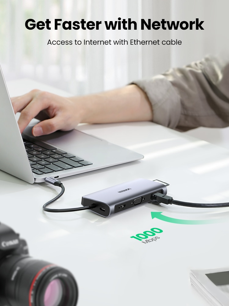 USB C to RJ45 1000M Ethernet Port backwards compatible with 100Mbps/10Mbps RJ45 LAN. Gigabit Ethernet port ensures a more stable and faster wired network connection.